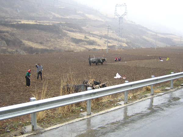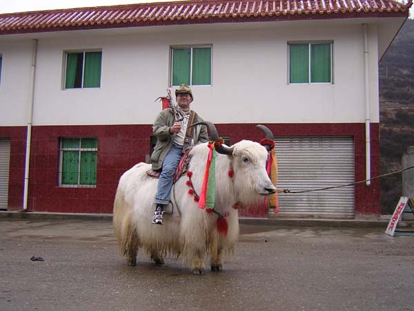 Al día siguiente, nos movimos por el norte de la provincia de Sichuan. Ese día vimos nevar en abundancia, también vi los yaks (especie de toros mansos que habitan en las mesetas tibetanas, parecidos a los toros escoceses) y una fábrica de utensilios fabricados con cuernos de yak: