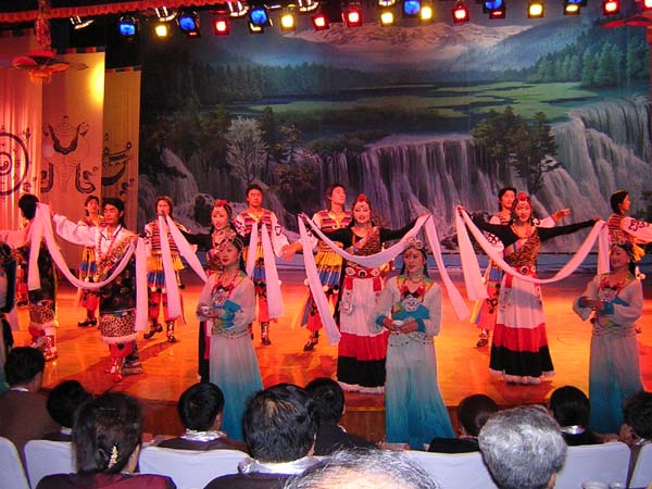 Tras la excursión había que reponer fuerzas, y luego fuimos a ver un espectáculo al hotel Sheraton de Jiuzhaigou, (sí Javier he dicho bien, Sheraton, un saludo por cierto :-), era un espectáculo sobre danzas y bailes tibetanos absolutamente recomendable.