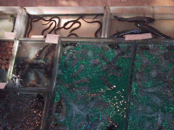 Otro aspecto a destacar es la comida, creo que globalmente hablando fue la mejor zona en la que comimos; estuvimos en buenos restaurantes, algunos de hasta ¡6000 plazas!. En muchos de ellos había pescado vivo, y en todos, las camareras eran de lo más simpáticas: