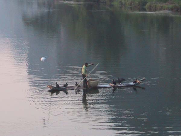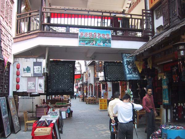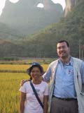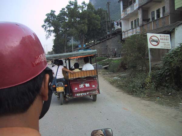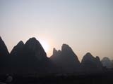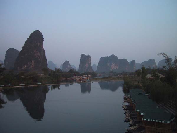 Llegamos a Guilin a las 8 de la mañana, una ciudad de más de 1.000.000 habitantes. Ya no se podían sacar billetes para el descenso por el río Li (Li Jiang) para este día, así que como solamente íbamos a estar un día, pues salíamos por la noche hacia Wuhan, cambiamos de planes: recorrimos la ciudad en un autobús, y después fuimos en un trayecto de 2 horas en microbús a Yangshuo, una ciudad muy pequeña con una calle muy larga llena de restaurantes y puestos de artesanía.