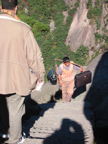 La subida se hace dura, muchas escaleras. Hay gente que se gana la vida subiendo a otros en típicas sillas chinas. En cuanto nos veían pasar estas personas, rápidamente ofrecían sus servicios a Juan y a Javier, no a mi. ¿será que los veían más cansados?.