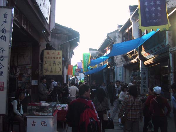 Había multitud de tiendas y mucha gente en las calles comerciales. Se nota la influencia turística de Huang Shan.