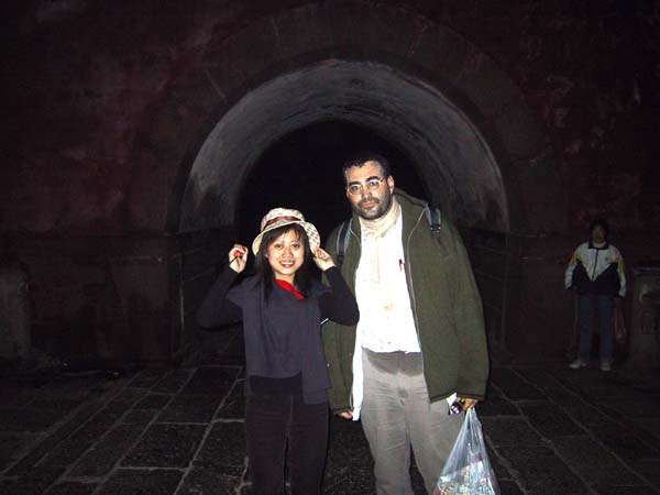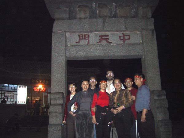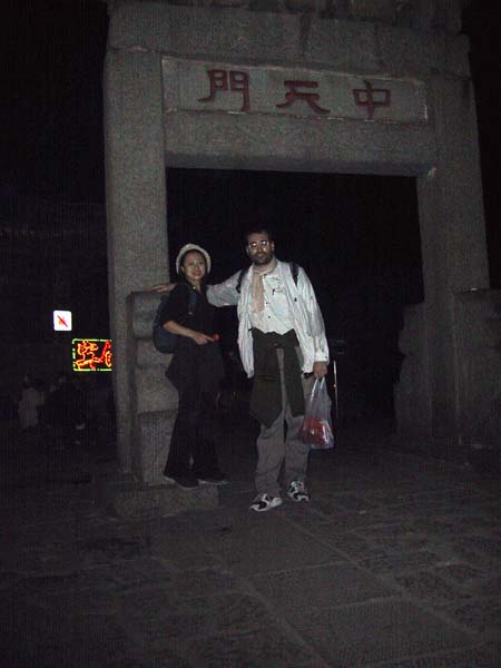 Sobre las 2:30 de la madrugada pasamos por la mitad del recorrido, por la puerta del medio del camino hacia el cielo: ZHONG TIAN MEN. De tanto en tanto nos encontrabamos con algún otro grupo de turistas chinos que también estaban subiendo la montaña de noche, se sorprendían mucho de ver a un occidental, y algunos de ellos querían hacerse fotos conmigo: