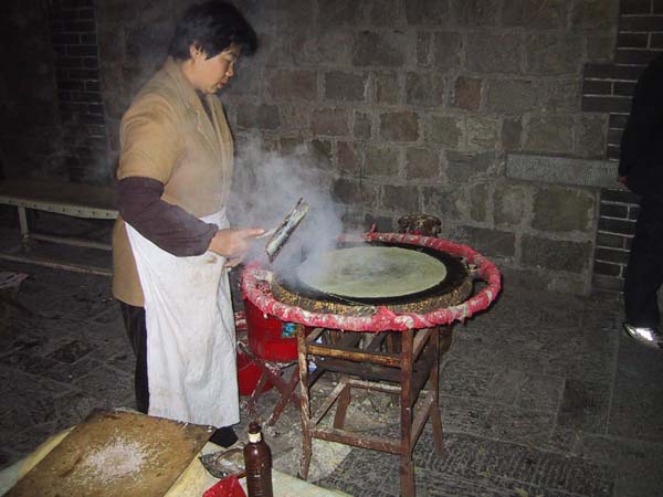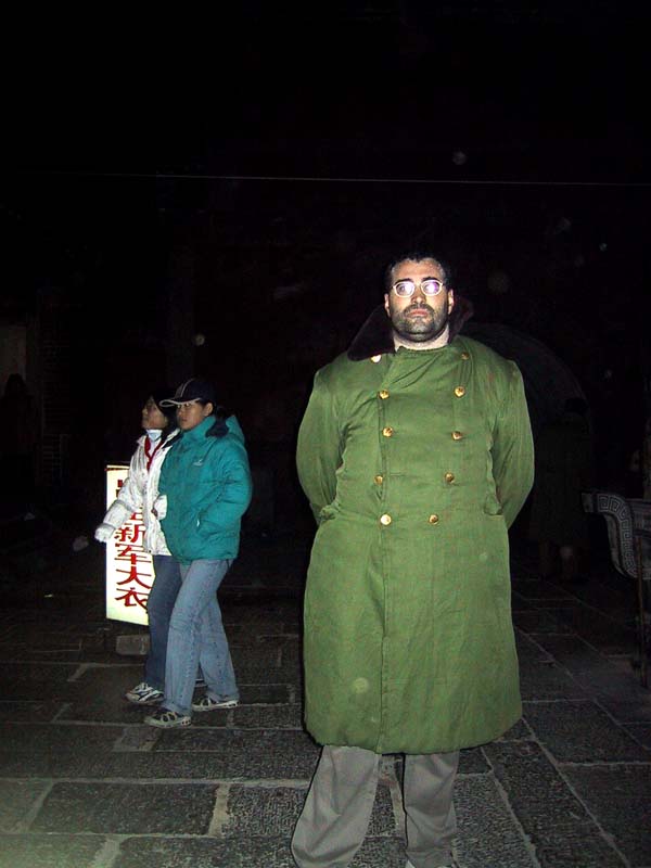 Finalmente sobre las 5:00 de la madrugada llegamos arriba a NAN TIAN MEN (La puerta del sur del cielo). La ascensión fue realmente dura, especialmente para mi, que tenía que mover más de 100 Kg. y había tramos en que las escaleras no estaban hechas para mi tamaño de pie. Una vez arriba descansamos un buen rato a la espera de que el sol saliera; hacía mucho frío así que alquilamos trajes del ejército y nos tomamos algo caliente que cocinaban arriba.