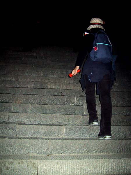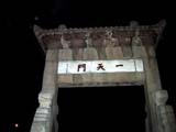 Taishan, al igual que ocurría con Huang Shan (La Montaña Amarilla) está escalonada; la subida completa tiene unos 6.000 escalones. Compramos 2 linternas, recambios de pilas y justo a las 24:00 horas empezamos la subida pasando por la primera puerta del camino hacia el cielo (YI TIAN MEN):