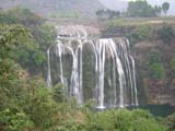 Y finalmente veamos alguna foto de las cataratas. No era época de lluvias, por eso apenas bajaba agua, pero en otras épocas del año, es una cortina continua de agua lo que baja por allá. Sus dimensiones son aprox. 80 por 90 metros. Por el interior de la presa hay un caminito y se puede pasar, de hecho en alguna foto se puede apreciar a alguna persona en su interior: