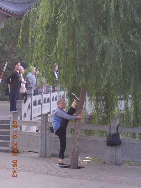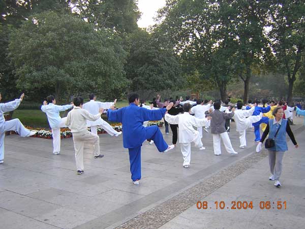 Llegué a Hangzhou cuando ya estaba anocheciendo. Aproveché para ir a Lago del Oeste (la parte más famosa y bonita de la ciudad) por la noche, vi los mercadillos nocturnos y cené en un buen restaurante que daba al lago. Al día siguiente por la mañana, antes de salir para Lishui, volví al lago del Oeste a ver a la gente haciendo gimnasia: