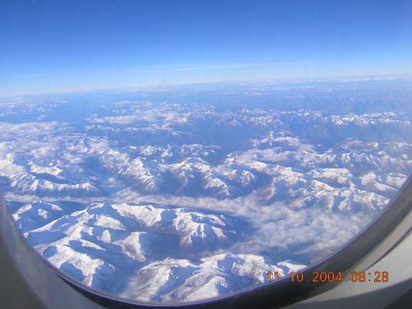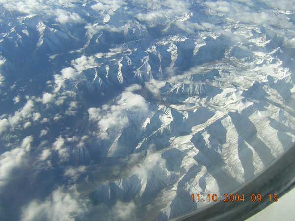 En Chendu estuve una tarde y una noche. A las cinco de la mañana me levanté para ir al aeropuerto y salir hacia Lhasa. Allí me encontré con 3 españoles (gallegos para más señas) que también iban a realizar el mismo trayecto. El avión a Lhasa era bien grande y estaba completamente lleno, tuve la suerte de que me tocó ventanilla y por tanto pude mirar el paisaje que hay camino a Lhasa. Sin duda fue una de las experiencias visuales más impresionantes de este viaje.