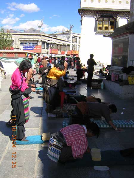 En Lhasa estuve un día entero, luego estuve 2 días en otras ciudades del Tibet, y posteriormente volví a Lhasa donde estuve 2 días más. En la ciudad se diferencian claramente la parte (y las personas) tibetana de la parte propiamente china. Los tibetanos se dedican en su mayoría a rezar y van en peregrinación por la ciudad y los segundos se dedican a vender y hacer negocios con el abundante turismo extranjero que hay por la ciudad. Sin duda es la parte tibetana la que le da un áura especial a la ciudad:
