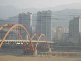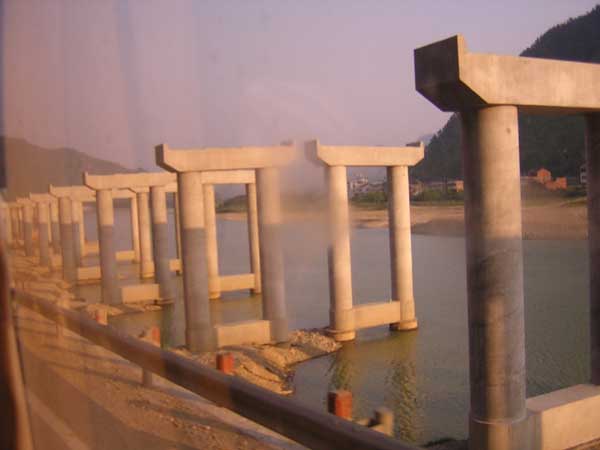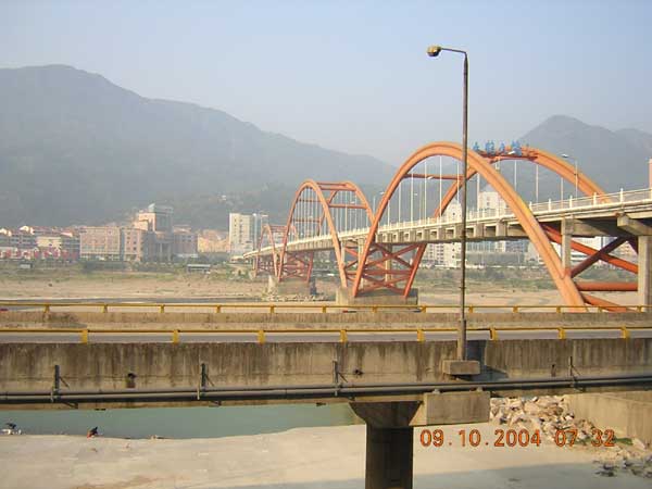 Para finalizar un par de imagen del puente central de Qintian, una a cada lado de la orilla: