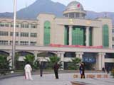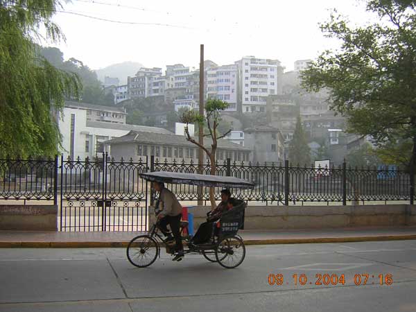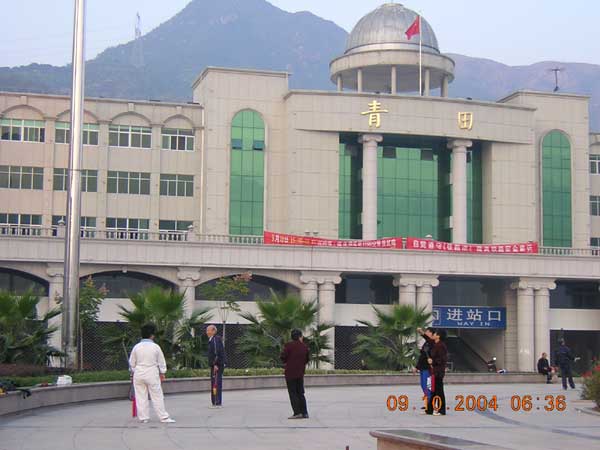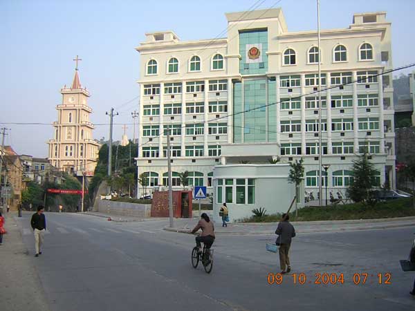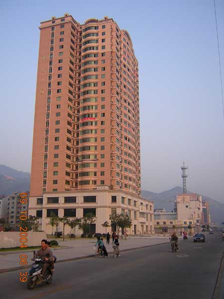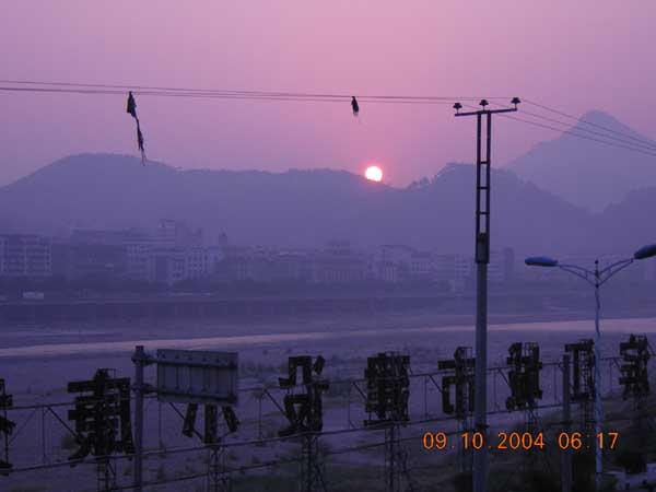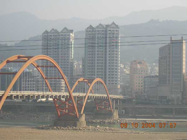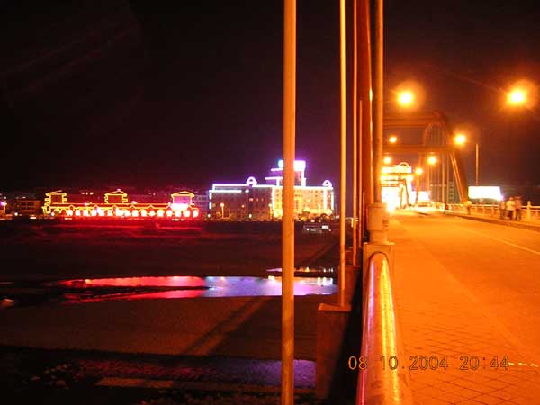 A media tarde cogí un autobús de línea en Lishui con destino a Qintian. El trayecto dura aproximadamente una hora, va paralelo a un río y durante todo el viaje vi obras de lo que parece será una autovía entre estos 2 lugares. Qintian es un pueblo, a ambas orillas del río Ou, cruzado por 2 grandes puentes y rodeado de montañas. La mayoría de los chinos que hay en España provienen de este pueblo. Al llegar estaba anocheciendo, tras ir al hotel y dejar los bártulos, salí a recorrer la ciudad. Cené en un restaurante que me gustó mucho (por cierto la camarera que me atendió sabía decir gracias y adiós en español), y de vuelta al hotel tomé un café en uno de los muchos garitos estilo occidental que hay repartidos por el pueblo.